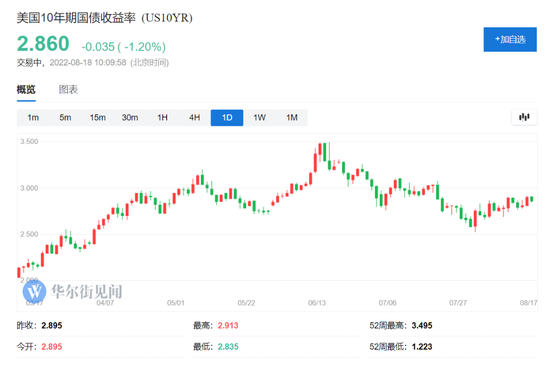 由于对美国经济衰退的担忧加剧,当前,美国10年期国债收益率已经从6月3.50%的高点下跌了超过60个基点。