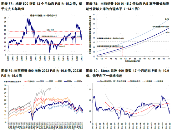 当前标普500的15.2倍动态P/E高于增长和流动性能支撑的合理水平(~14.1倍)。