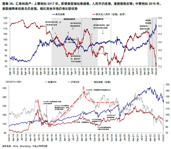 ►上策:全球新增长点出现,增长化解通胀、紧缩和债务压力。此时,风险偏好的提升,也有助于缓解流动性冲击和资产价格的波动,这一情形类似于2016~2017年的中国,当时即便美联储加息和缩表,人民币(7.1925, 0.0220, 0.31%)也持续走强,资金大幅流入,就是最好的例证。