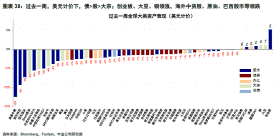 ► 资产表现:债>股>大宗;利率抬升、美元走强、油价回调。