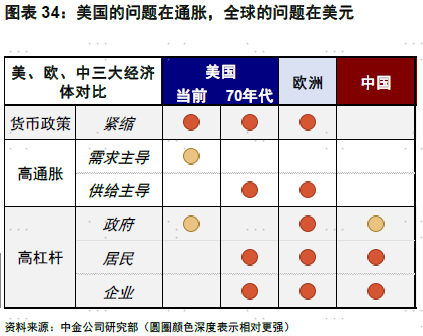 可能的解决方法与出路有两种选择。上策:全球新增长点出现,增长化解通胀、紧缩和债务压力。中策:美联储政策退坡,美债利率下行,进而部分缓解流动性收紧的压力。