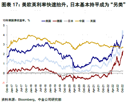 便宜钱消失,既是价格上融资利率的快速抬升(例如扰动英国养老金市场的2年英国国债利率在2个交易日跳升100bp,作为全球定价基准和更多资产锚定的10年美债利率8月以来上升145bp;日本国债被日央行YCC政策锚定在0.25%的低位成为“例外”,但却遭遇了多日无成交的尴尬境地),也受量上主动或被动收缩影响(例如美联储加速缩表;避险情绪下全球资金回流美国;欧美作为主要消费国进口需求下降导致贸易逆差萎缩等),但殊途同归,最终结果都是低成本的便宜资金在减少。一个直接证据是,全球负利率债券从2020年底高峰的18万亿美元降至当前的2万亿美元,且全部以日本为主,这也突出了日本作为当前为数不多的全球主要便宜钱供给方如果发生变化和逆转的重要性。